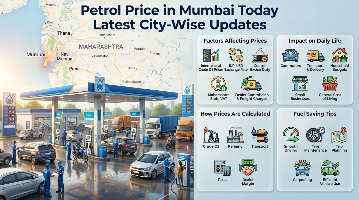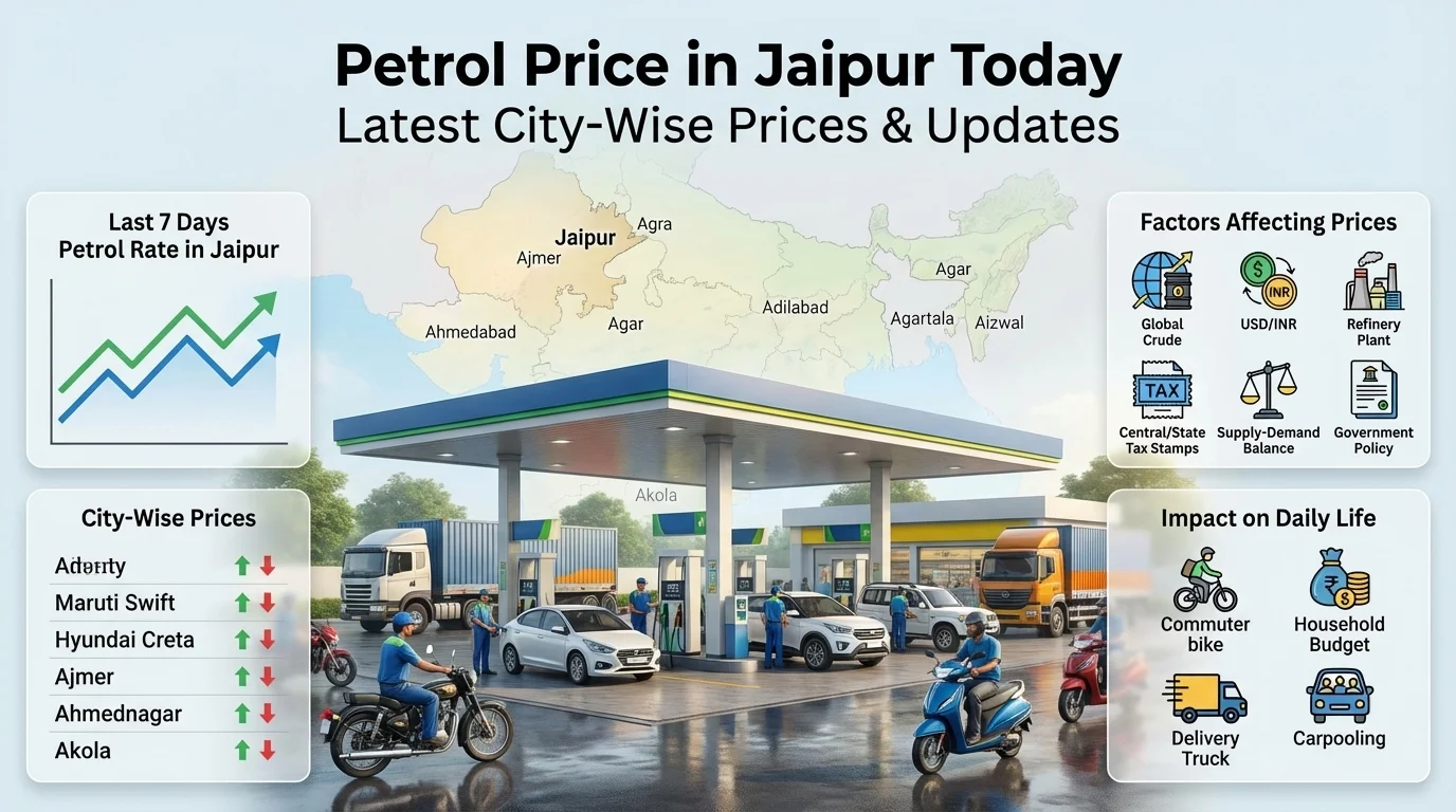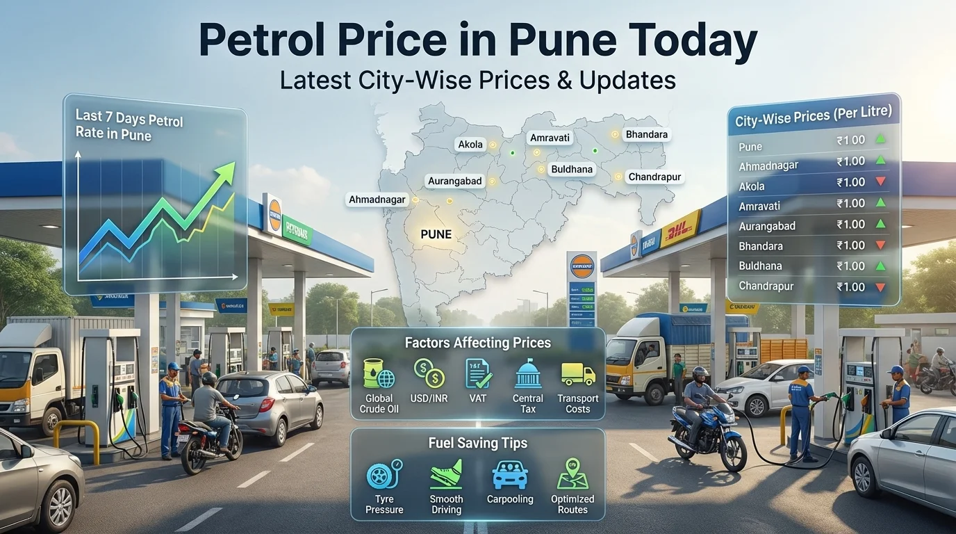 Stay informed about the latest petrol price updates in your city and throughout India. Get daily gasoline rate updates, view today’s petrol price trends, and track fluctuations to better plan your fuel expenses. Discover precise, real-time petrol prices, as well as historical data and prospective insights.