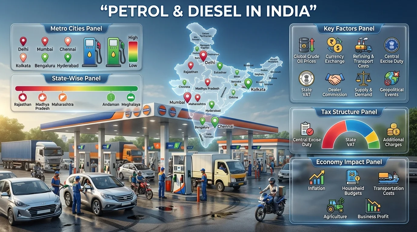 Stay informed about the latest petrol price updates in your city and throughout India. Get daily gasoline rate updates, view today’s petrol price trends, and track fluctuations to better plan your fuel expenses. Discover precise, real-time petrol prices, as well as historical data and prospective insights.